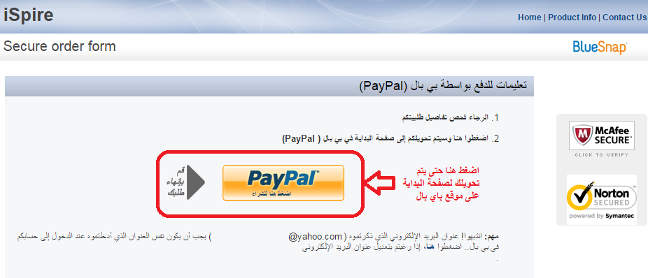 اضغط على زر "قم بإنهاء طلبك" حتى يتم تحويلك إلى صفحة البداية في موقع باي بال.