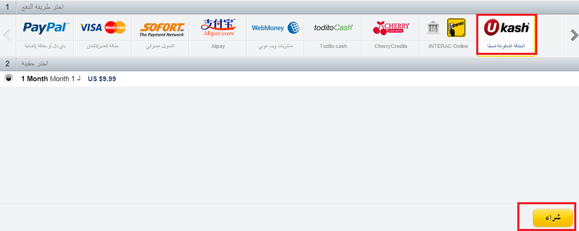 انقر زر “UKash” ثم زر “شراء”.