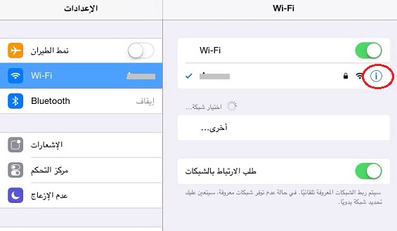 اضغط على أيقونة (i) بجانب اتصالك الحالي بالإنترنت.