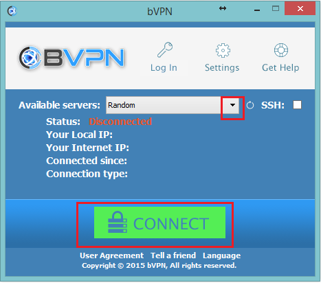 点击下拉菜单,查看b.VPN服务器列表,选择您的首选伺服器,然后点击“连接”、
