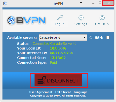 Daha sonra "Bağlantıyı Kes" [Disconnect] butonuna ve ardından "X" üzerine tıklayın.